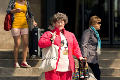 One of the film's many running gags is how the CIA dresses its spies in debonair or slick costumes, but forces Cooper to dress like a midwestern Avon lady or in another particularly dreadful getup that McCarthy hilariously notes "looks like somebody's homophobic aunt."